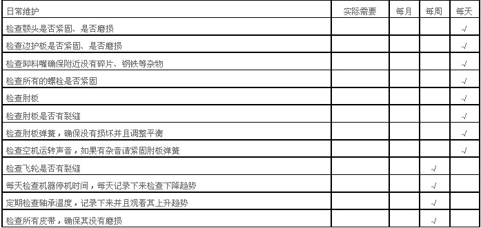 (6)破碎機使用一定時間后,應(yīng)重新緊固所有緊固件。